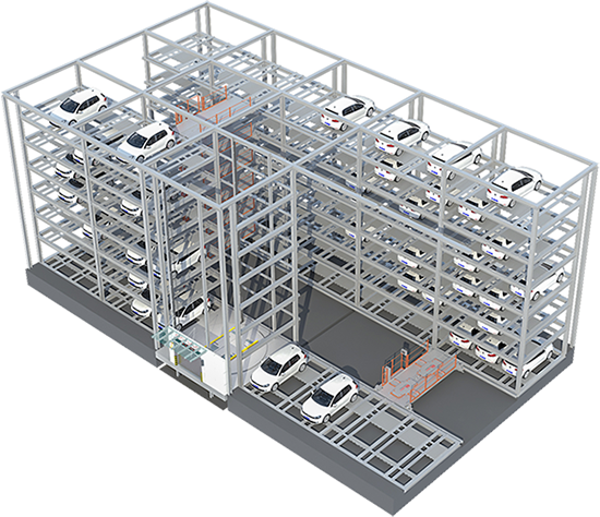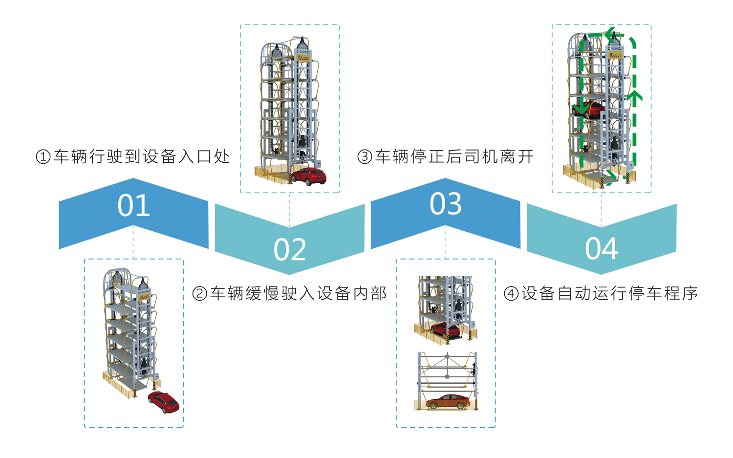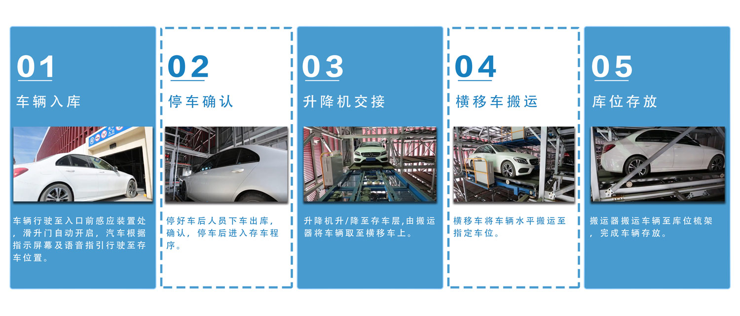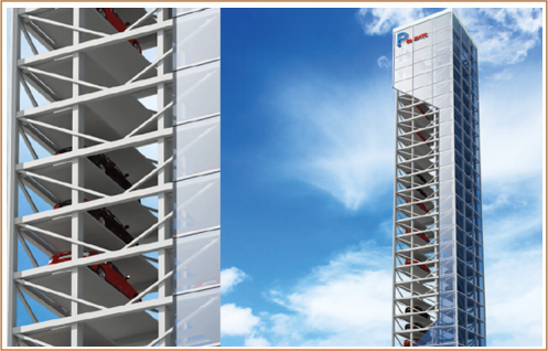 垂直升降類機械式停車設備亦可稱之為“塔庫”,主要通過升降裝置的升降和裝在升降裝置上的智能搬運器將車輛搬運至固定車位上,從而實現車輛的存取。